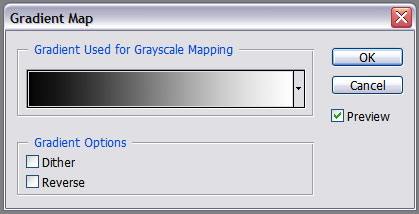 Step 1: Open the photo in Photoshop, then add a Gradient Map adjustment layer (Click the Create new fill or adjustment layer icon at the bottom of the Layers palette and then select Gradient Map, or select Layer > New Adjustment Layer > Gradient Map from the menu). You will see the following dialog box: